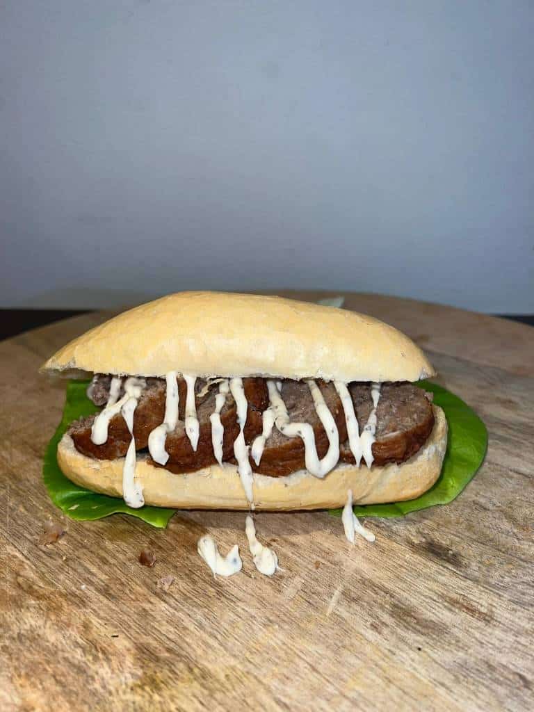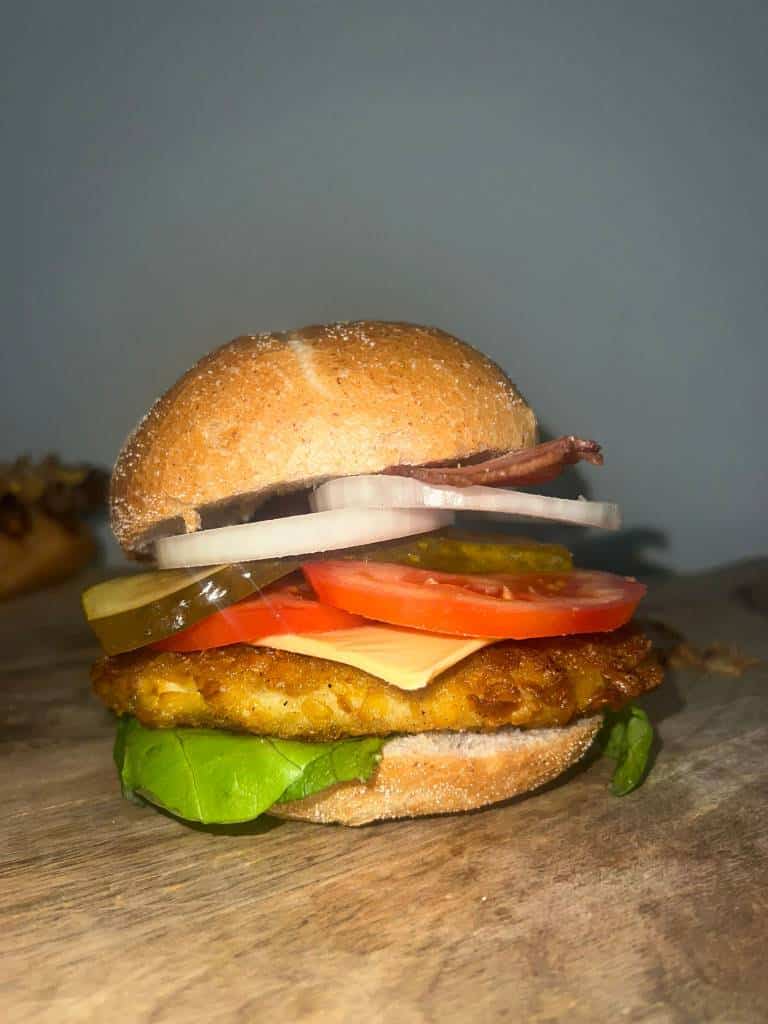 Hier komt de omschrijving van broodje hamburger de luxe